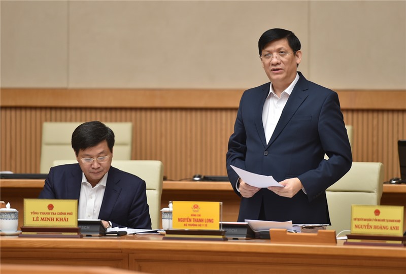 Bộ trưởng Bộ Y tế Nguyễn Thanh Long phát biểu tại phiên họp. - Ảnh: VGP/Quang Hiếu