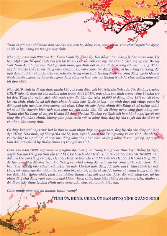 Thư chúc mừng năm mới của Tỉnh ủy, HĐND, UBND, Ủy ban MTTQ tỉnh