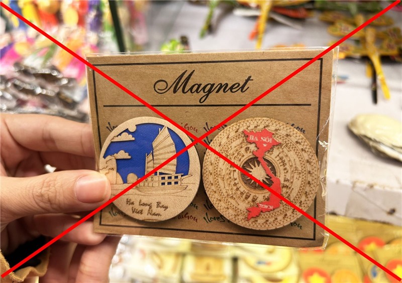 Sản phẩm in hình bản đồ Việt Nam bị sai. Ảnh: Thanh Chân