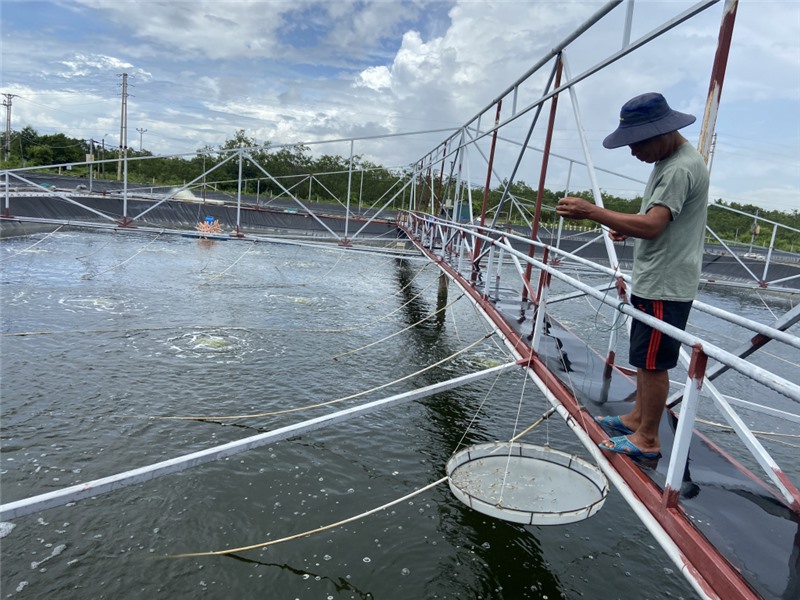 Người dân phường Trưng Vương, TP Uông Bí chủ động ứng dụng KHCN vào mô hình nuôi tôm.
