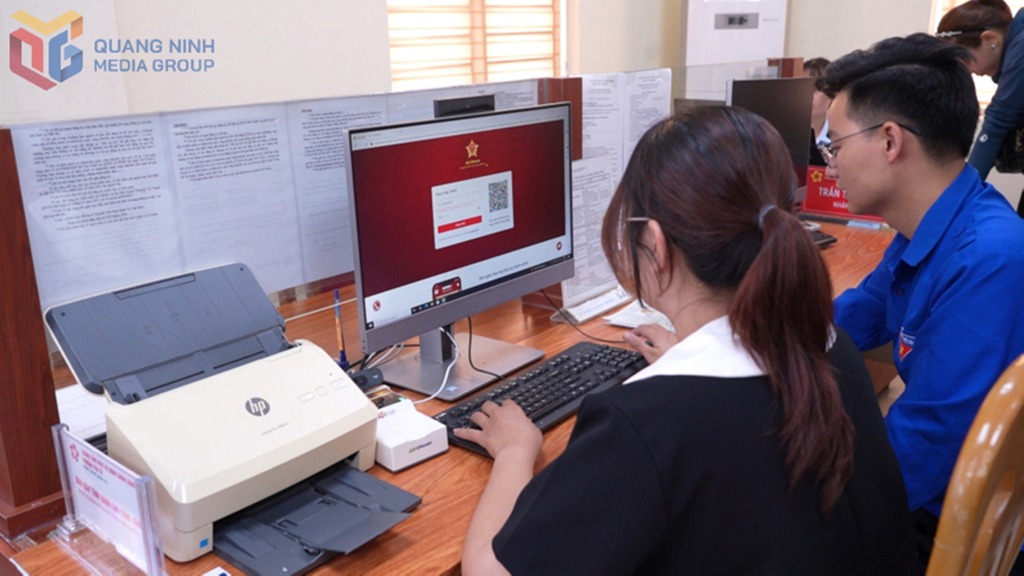 ĐVTN phường Yên Tử hướng dẫn công dân thực hiện số hóa hồ sơ vào ví giấy tờ điện tử của cá nhân.