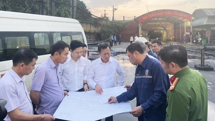 Lãnh đạo tỉnh Quảng Ninh đang chỉ đạo công tác cứu hộ tại hầm lò Công ty than Quang Hanh, Thành phố Cẩm Phả.