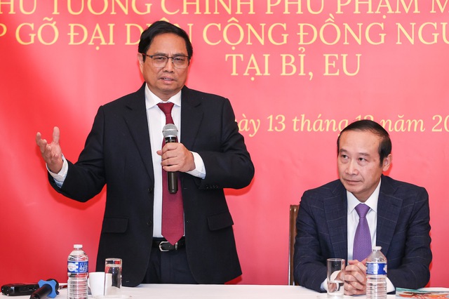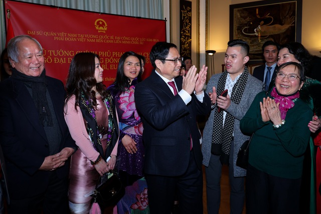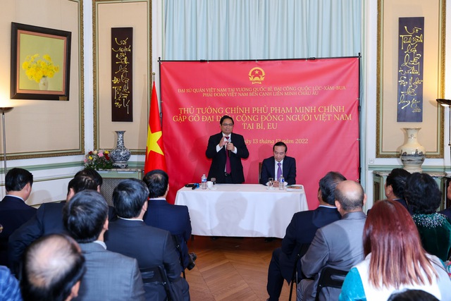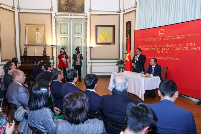 Thủ tướng đánh giá cao vai trò, đóng góp quan trọng cộng đồng người Việt Nam tại Bỉ và châu Âu đối với công cuộc xây dựng và bảo vệ Tổ quốc, cũng như đối với quan hệ giữa Việt Nam - Bỉ và Việt Nam – EU; đồng thời thông báo về kết quả cuộc hội đàm với Thủ tướng Bỉ Alexander De Croo cũng như những thành quả nổi bật trong quan hệ Việt Nam – Bỉ, Việt Nam - EU thời gian qua.