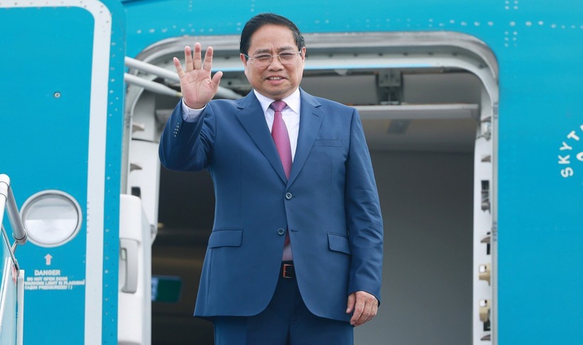 Thủ tướng Phạm Minh Chính lên đường dự Hội nghị thường niên các nhà tiên phong lần thứ 16 của WEF và làm việc tại Trung Quốc. (Ảnh DƯƠNG GIANG/TTXVN)
