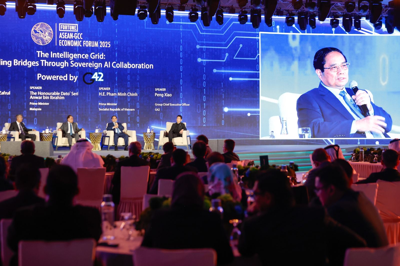 Thủ tướng cho rằng ASEAN là khu vực phát triển năng động, là tâm điểm tăng trưởng, có văn hóa đa dạng, nhân công rẻ và thị trường rộng lớn. Trong khi GCC có nguồn năng lượng, tài chính dồi dào, có công nghệ và có kinh nghiệm. Hai điểm này cho thấy hai khu vực có thể bổ trợ cho nhau rất rõ ràng trong lĩnh vực AI và để kết nối hai nền kinh tế, kết nối sự phát triển, trong đó có kết nối về AI, thì doanh nghiệp và người dân là chủ thể, là trung tâm, đóng vai trò quyết định, Nhà nước đóng vai trò kiến tạo.