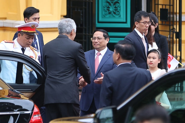 Sau lễ đón, Thủ tướng Phạm Minh Chính và Thủ tướng Singapore Lý Hiển Long tiến hành hội đàm, trao đổi thực chất về các biện pháp nhằm tạo đột phá trong quan hệ hai nước, làm sâu sắc hơn nữa quan hệ Đối tác chiến lược.