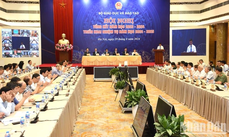 Sáng 19/8, tại Hà Nội, Thủ tướng Phạm Minh Chính dự và chủ trì Hội nghị tổng kết năm học 2023-2024, triển khai nhiệm vụ năm học 2024-2025 do Bộ Giáo dục và Đào tạo tổ chức. Cùng dự có đại diện lãnh đạo các bộ, ngành, cơ quan Trung ương. Hội nghị được kết nối trực tuyến tới 63 tỉnh, thành phố trực thuộc Trung ương.