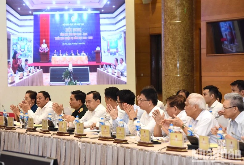 Hội nghị đã nghe Báo cáo tổng kết năm học 2023-2024, phương hướng nhiệm vụ năm học 2024-2025; tham luận của các địa phương về công tác tổ chức năm 2023-2024 và các giải pháp tổ chức năm học 2024-2025, nâng cao chất lượng dạy và học, tổ chức tốt các kỳ thi tốt nghiệp...; kiến nghị Chính phủ, Thủ tướng Chính phủ, Bộ Giáo dục và Đào tạo, các bộ, ngành, cơ quan liên quan nhiều vấn đề nhằm tháo gỡ mọi khó khăn, vướng mắc để nâng cao hiệu quả trong phát triển sự nghiệp giáo dục và đào tạo.