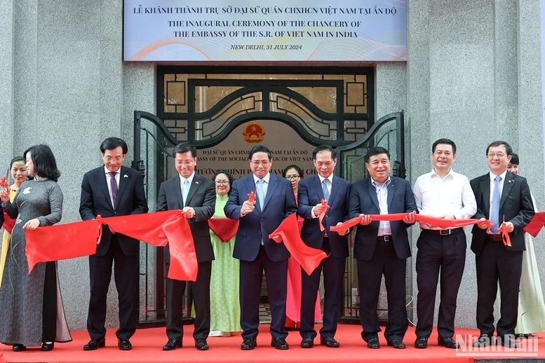Chiều 31/7 (giờ địa phương), tại thủ đô New Delhi, trong chương trình chuyến thăm cấp Nhà nước tới Ấn Độ, Thủ tướng Phạm Minh Chính đến dự và cắt băng khánh thành trụ sở Đại sứ quán Việt Nam tại Ấn Độ; gặp gỡ cán bộ, nhân viên Đại sứ quán và cộng đồng người Việt Nam tại Ấn Độ.