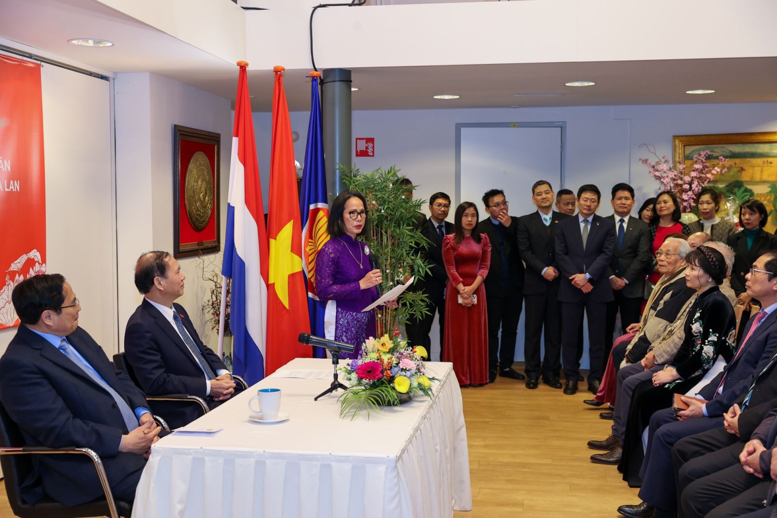 Thông tin tình hình chung về cộng đồng người Việt Nam tại nước ngoài, Thủ tướng đánh giá cao thành tựu của cộng đồng người Việt Nam tại Hà Lan- một cộng đồng lớn tại châu Âu. Bà con đoàn kết, thống nhất trong cộng đồng; trở thành cầu nối quan trọng, giúp quảng bá và đưa hàng hóa Việt Nam vào thị trường Hà Lan và các nước châu Âu khác.