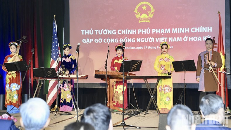Thủ tướng nêu rõ, cộng đồng kiều bào nói chung ngày càng tăng về số lượng và mở rộng về địa bàn với khoảng 6 triệu người tại hơn 130 quốc gia và vùng lãnh thổ, trong đó có 0,6 triệu là chuyên gia, trí thức; trong đó, cộng đồng người Việt tại Hoa Kỳ tiếp tục phát triển lớn mạnh, có khoảng 2,2 triệu người, là cộng đồng người Việt đông nhất trên toàn thế giới. Trong đó, riêng bờ Tây số người Việt lên đến hơn 1 triệu người, trong đó tại San Francisco có 700 nghìn người. Đây là cộng đồng thành công, sáng tạo, đóng góp nhiều cho Hoa Kỳ và quan hệ hai nước. Thủ tướng cho biết, kim ngạch thương mại song phương năm 2022 đạt 123 tỷ USD, trong đó Việt Nam xuất khẩu sang Hoa Kỳ hơn 100 tỷ USD; rất đông sinh viên Việt Nam sang học tập ở đây, nhiều người Việt Nam thành đạt tại Hoa Kỳ…