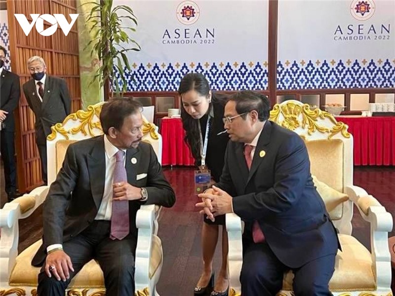 Chiều 10/11, nhân dịp dự Hội nghị cấp cao ASEAN 40, 41 tại Thủ đô Phnom Penh (Vương quốc Campuchia), Thủ tướng Chính phủ Phạm Minh Chính đã có cuộc gặp với Quốc vương Brunei Darussalam Sultan Haji Hassanal Bolkiah.
