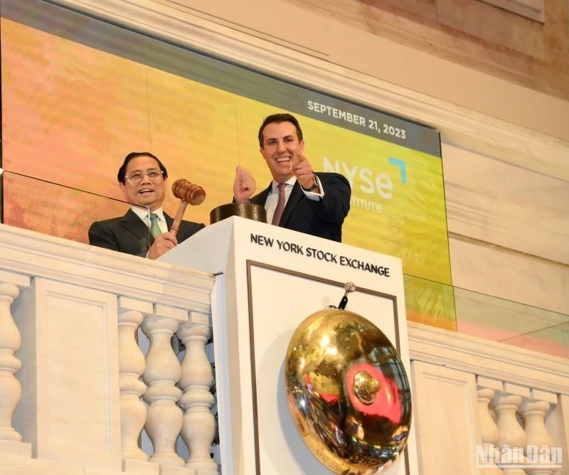Nhân dịp tham dự Tuần lễ Cấp cao khóa 78 Đại hội đồng Liên hợp quốc và hoạt động song phương tại Hoa Kỳ, sáng 21/9 (theo giờ địa phương), Thủ tướng Chính phủ Phạm Minh Chính đã tới tham quan Sàn giao dịch chứng khoán New York (NYSE) và rung chuông khai mạc phiên giao dịch tại sàn giao dịch chứng khoán lớn nhất thế giới này.