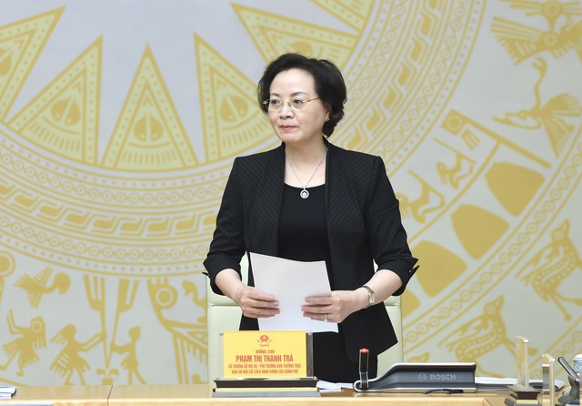 Bộ trưởng Bộ Nội vụ Phạm Thị Thanh Trà báo cáo tại phiên họp - Ảnh: VGP/Nhật Bắc