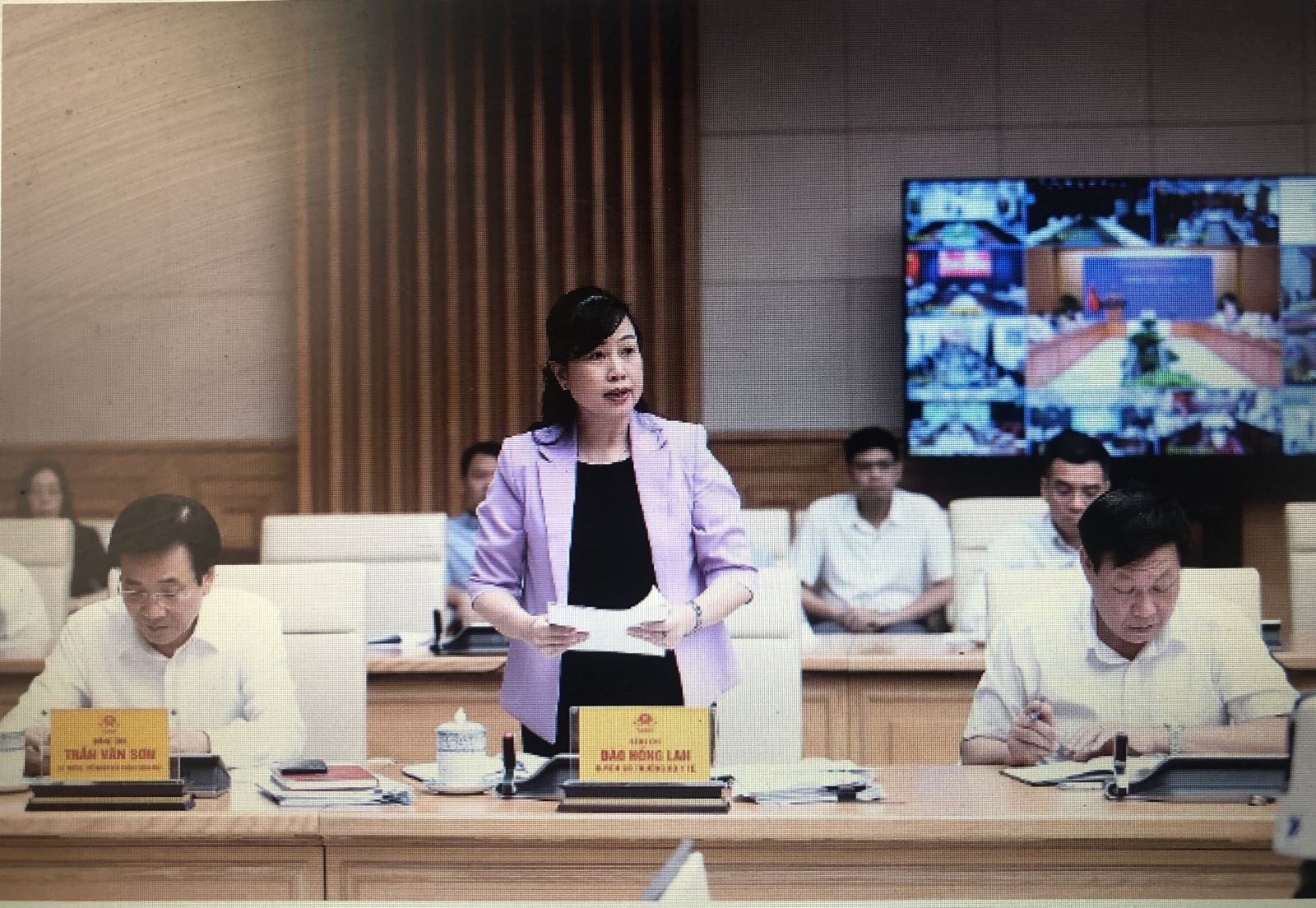 Quyền Bộ trưởng Bộ Y tế Đào Hồng Lan báo cáo tại cuộc họp Ảnh: Dương Giang