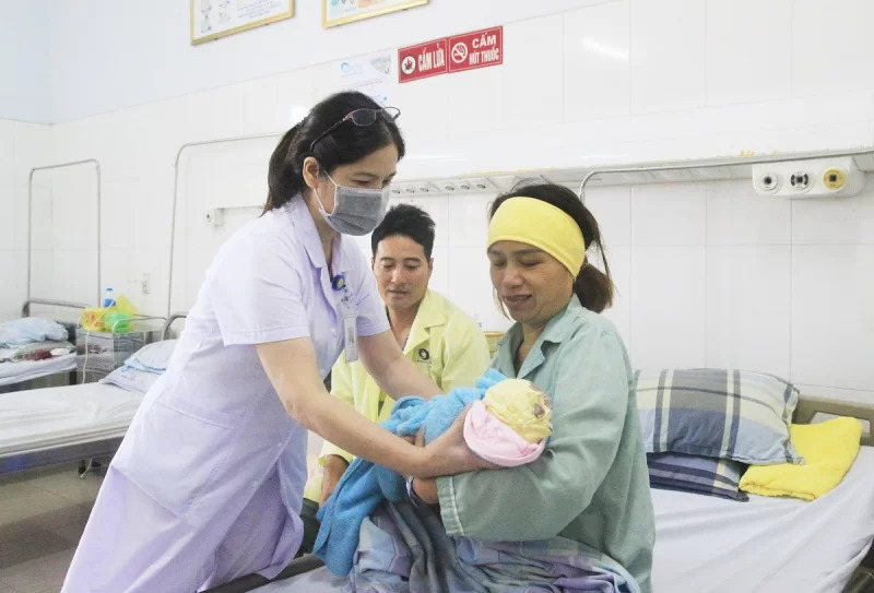 Bác sĩ Bệnh viện Bãi Cháy thăm khám sức khỏe cho phụ nữ sau sinh. Ảnh: Mạc Thảo (CTV)