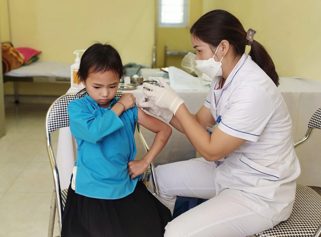 Trung tâm Y tế huyện Tiên Yên tiêm vắc-xin phòng bạch hầu, uốn ván cho trẻ em trên địa bàn huyện.