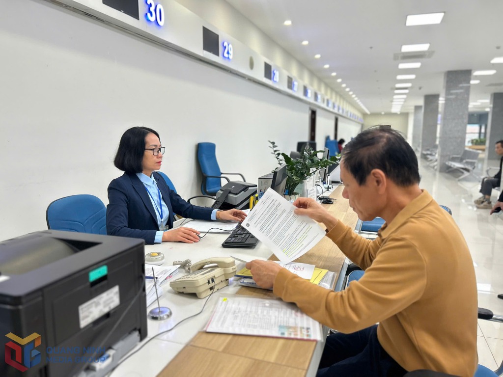 Cán bộ Trung tâm Phục vụ hành chính công tỉnh giải quyết TTHC cho người dân.