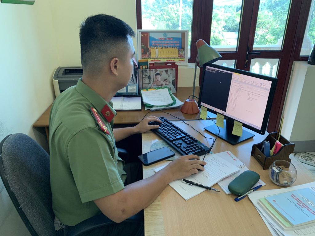 Cán bộ Công an TP Uông Bí kiểm tra hệ thống máy tính của cán bộ, đảng viên.
