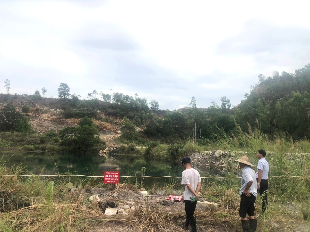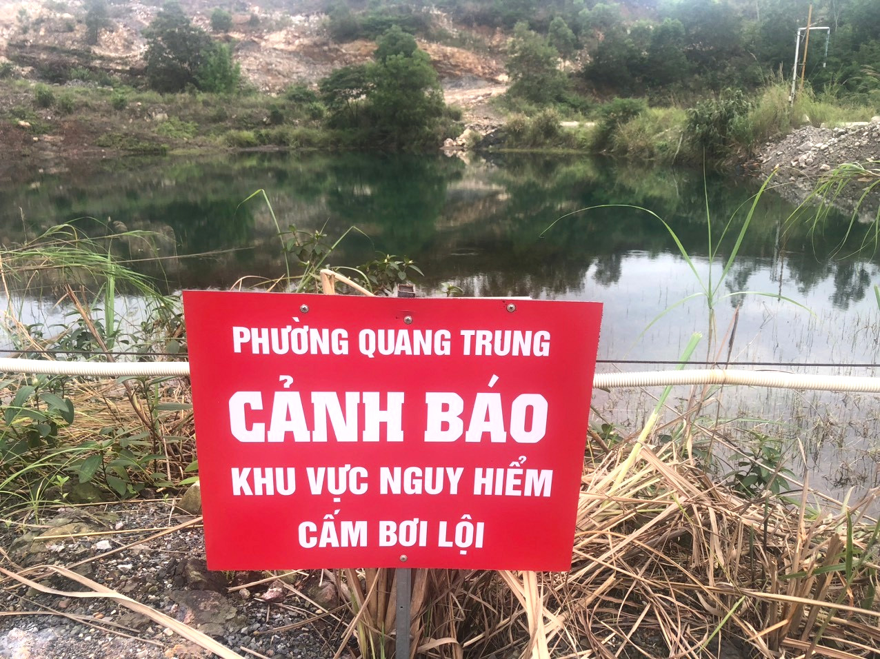 Phường Quang Trung bố trí các biển cảnh báo khu vực nguy hiểm tại khu vực khai thác đất trên địa bàn.