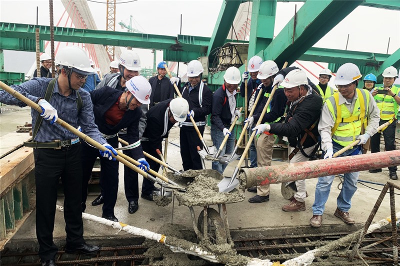 Những mẻ bê tông cuối cùng đã được rót xuống để hợp long cầu Bến Rừng nối đôi bờ Quảng Ninh - Hải Phòng. Ảnh: Đỗ Phương