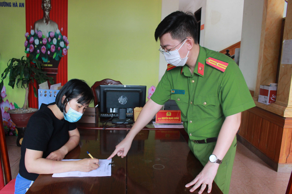 Công an phường Hà An (TX Quảng Yên) tiếp nhận hồ sơ và hướng dẫn người dân làm thủ tục đăng ký xe.