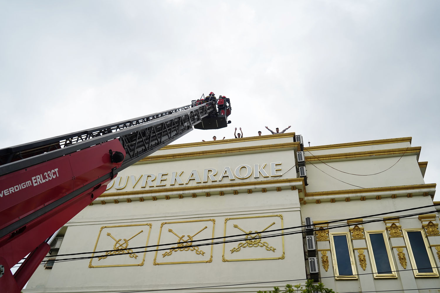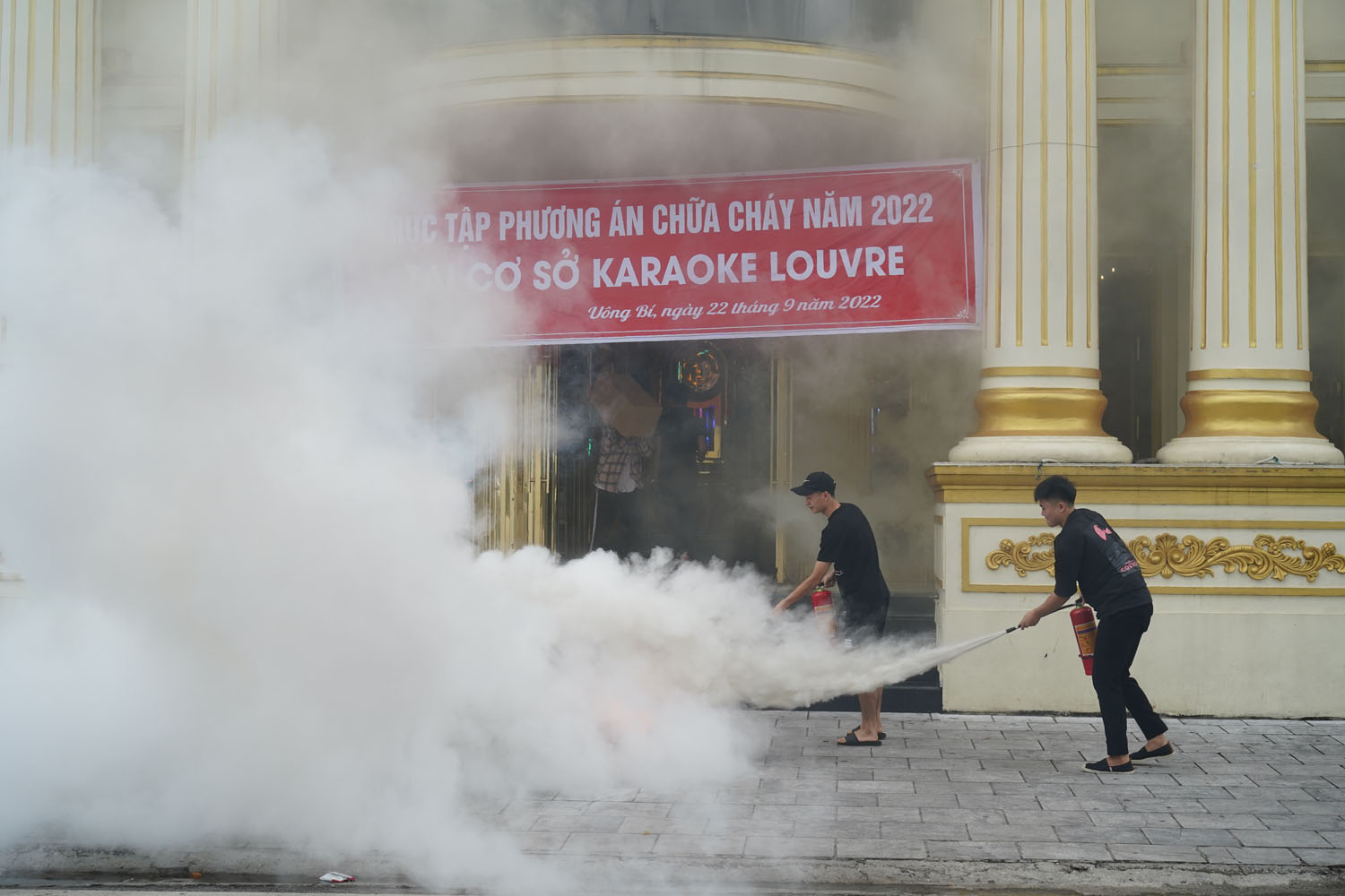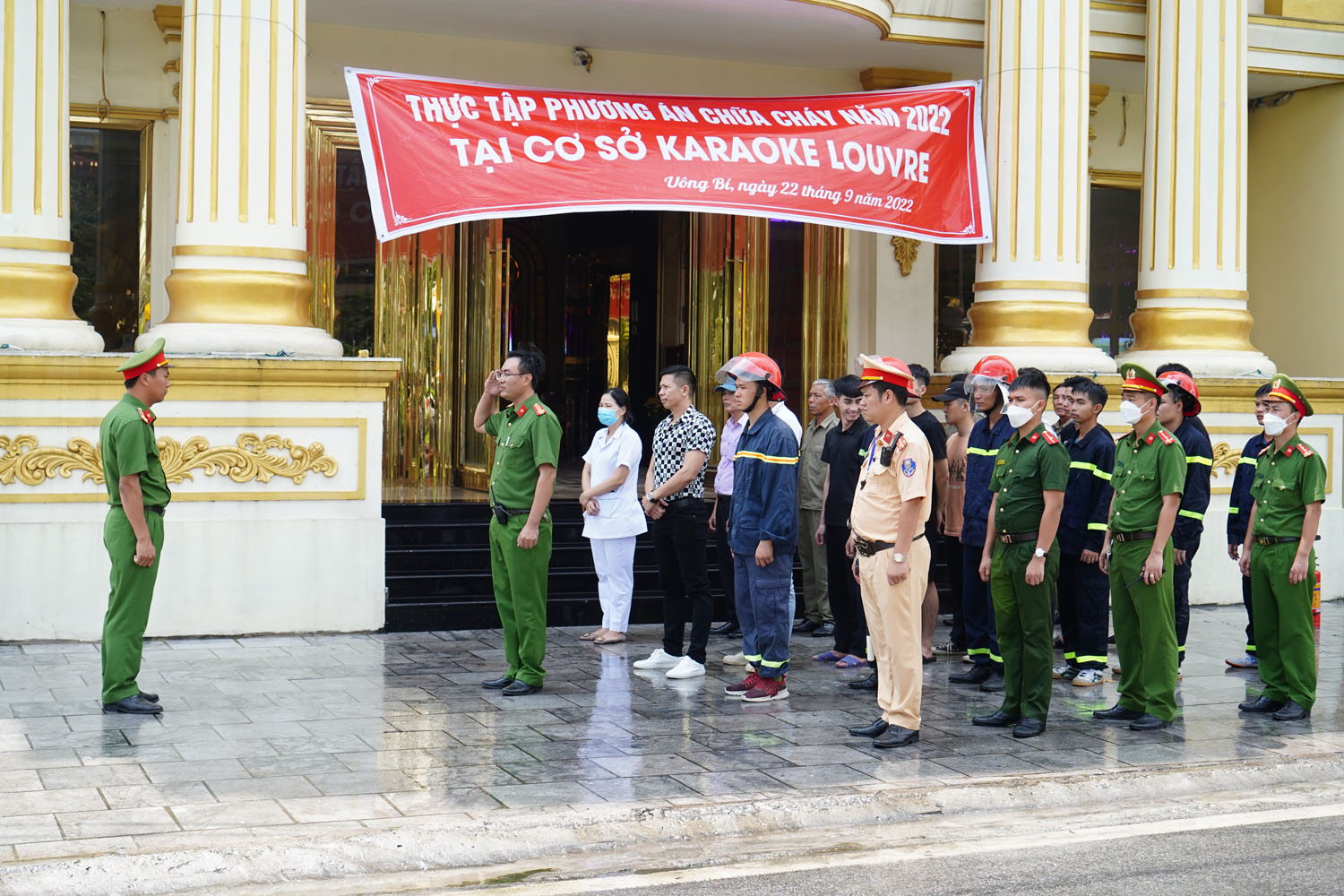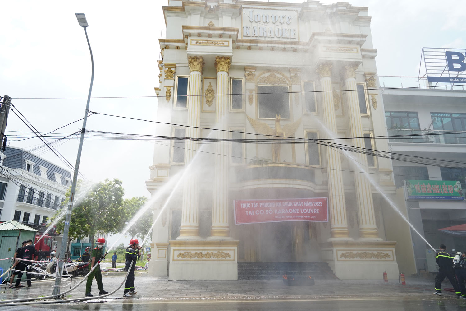 Thực tập phương án chữa cháy, cứu hộ cứu nạn tại cơ sở karaoke Louvre, phường Yên Thanh