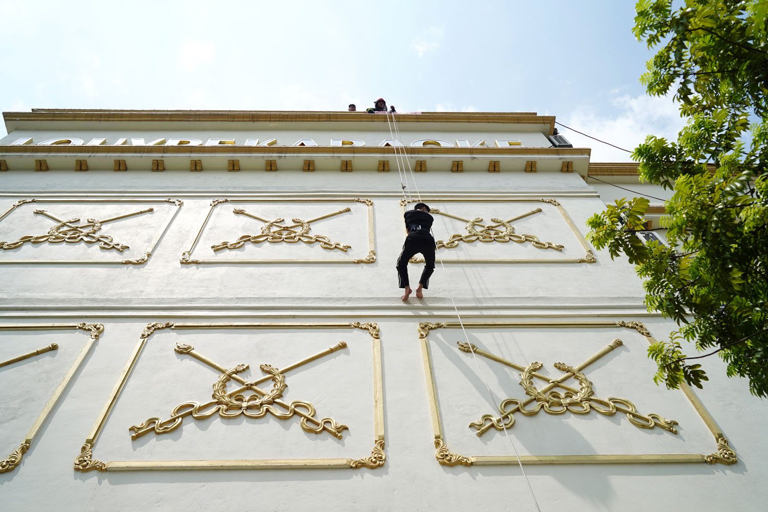 Sáng 22/9, Công an thành phố phối hợp với UBND phường Yên Thanh tổ chức thực tập phương án chữa cháy, cứu hộ cứu nạn tại cơ sở karaoke Louvre, khu đô thị Công Thành, phường Yên Thanh.