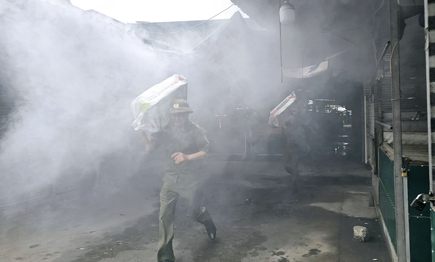 Thực tập phương án chữa cháy và cứu nạn, cứu hộ tại chợ Quang Trung
