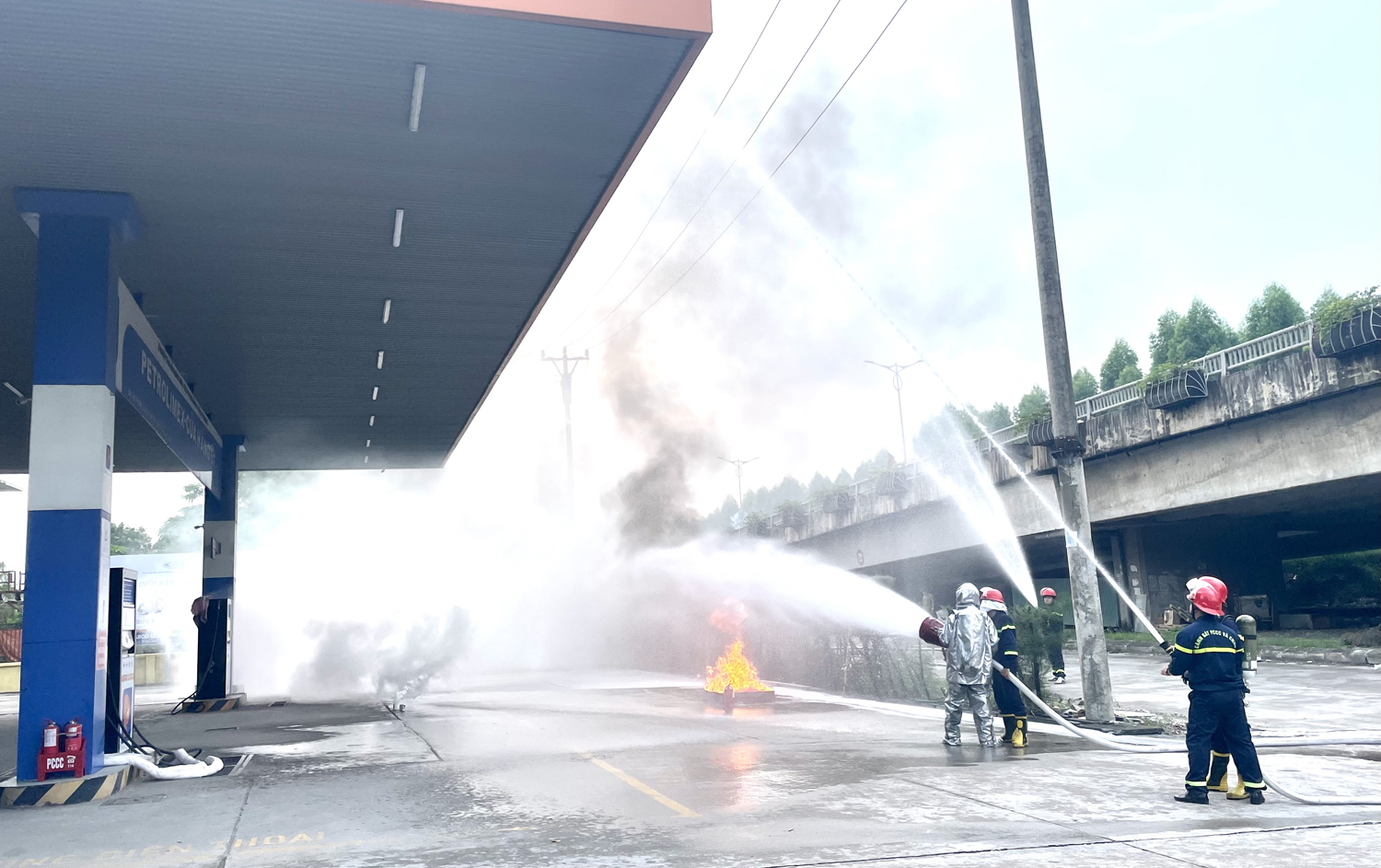 Thực tập phương án chữa cháy và cứu nạn cứu hộ tại Cửa hàng 61 - Xí nghiệp xăng dầu Quảng Ninh