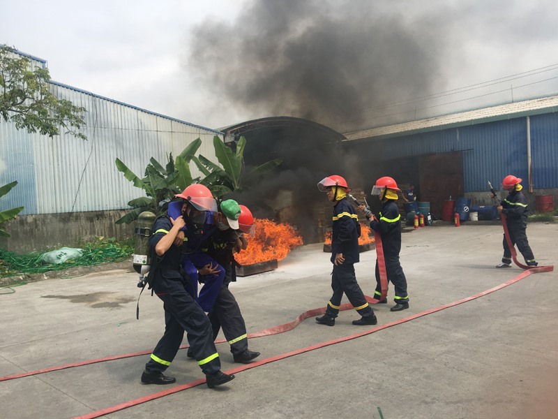 Theo tình huống giả định: do hệ thống điện trong nhà kho số 1 của Công ty quá tải, dẫn đến chập điện gây cháy. Đám cháy lan nhanh theo bề mặt, tỏa nhiều khói độc làm nhiều người bị ngạt, mắc kẹt bên trong.