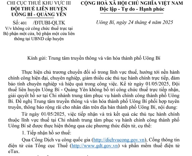 Chiều 18/11, phường Uông Bí phát động chiến dịch 60 ngày cao điểm chuyển đổi mô hình từ thuế khoán sang kê khai đối với hộ kinh doanh trên địa bàn....