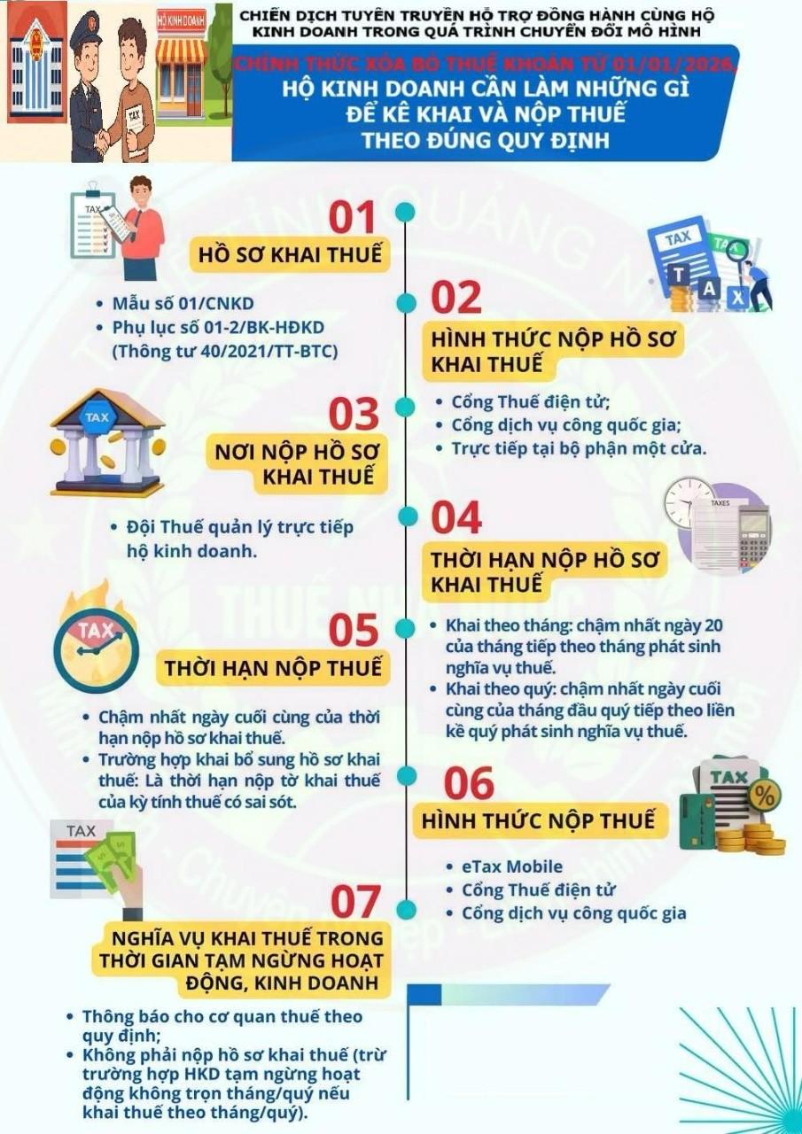 Từ 01/01/2026, chính thức không còn hộ, cá nhân kinh doanh nộp thuế theo phương pháp khoán! Các hộ, cá nhân kinh doanh sẽ chuyển sang nộp thuế theo phương pháp kê khai, minh bạch - chủ động - thuận tiện hơn.