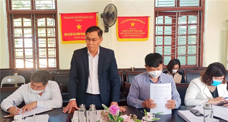 Lãnh đạo phường Vàng Danh báo cáo tại buổi làm việc.