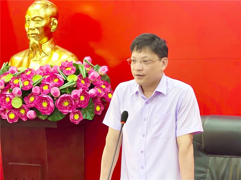 Đồng chí Nghiêm Xuân Cường, Tỉnh ủy viên, Bí thư Thành ủy, Chủ tịch HĐND thành phố phát biểu tại cuộc họp.