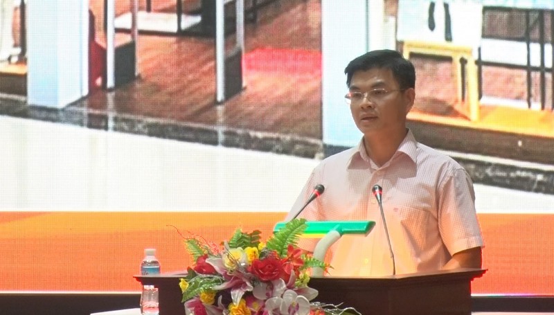 Đồng chí Trần Văn Lâm, Tỉnh ủy viên, Bí thư Thành ủy, Chủ tịch HĐND thành phố phát biểu tại hội nghị.