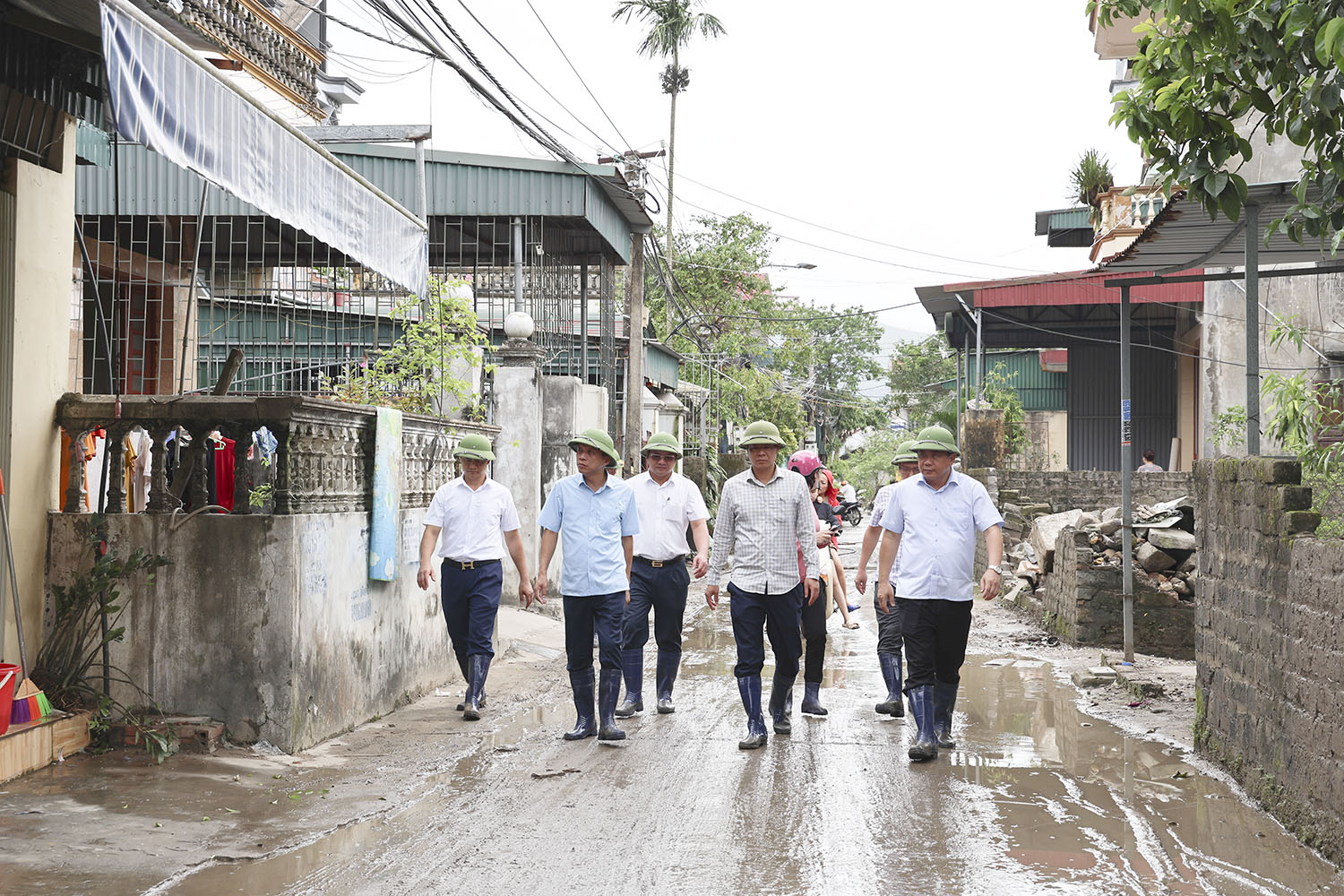 Thường trực Thành ủy kiểm tra, nắm tình hình khắc phục hậu quả bão số 3 tại phường Vàng Danh và xã Thượng Yên Công