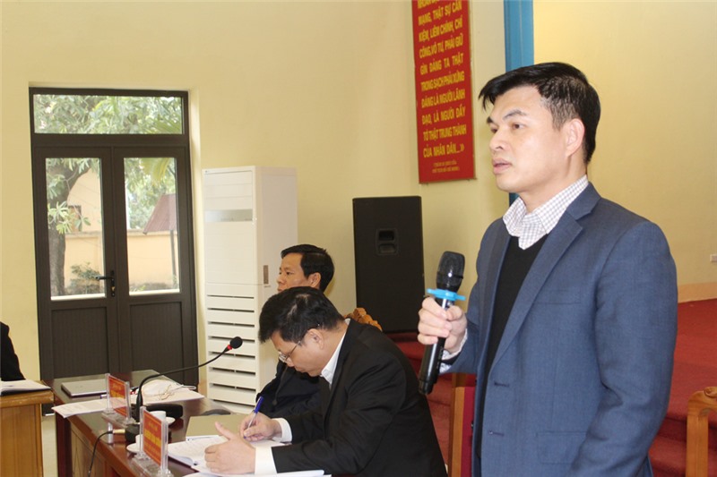 Đồng chí Nghiêm Xuân Cường, Tỉnh ủy viên, Bí thư Thành ủy Uông Bí phát biểu chỉ đạo tại buổi làm việc.