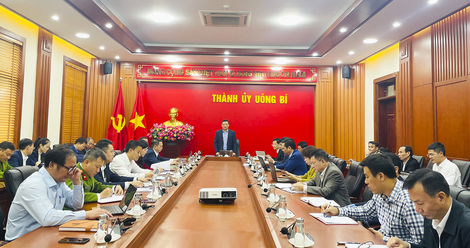 Đồng chí Nghiêm Xuân Cường, Tỉnh uỷ viên, Bí thư Thành uỷ, Chủ tịch HĐND thành phố chủ trì buổi làm việc.