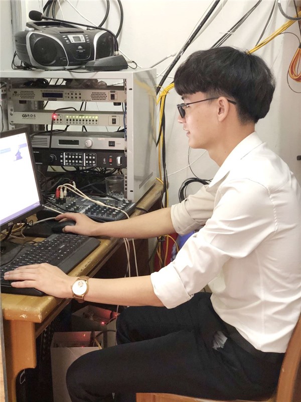 Cán bộ văn hóa xã vận hành hệ thống truyền thanh tuyền truyền.