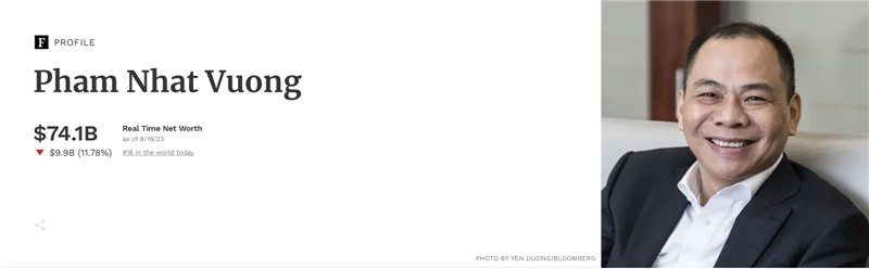 Tỉ phú Phạm Nhật Vượng lọt top 16 người giàu nhất thế giới