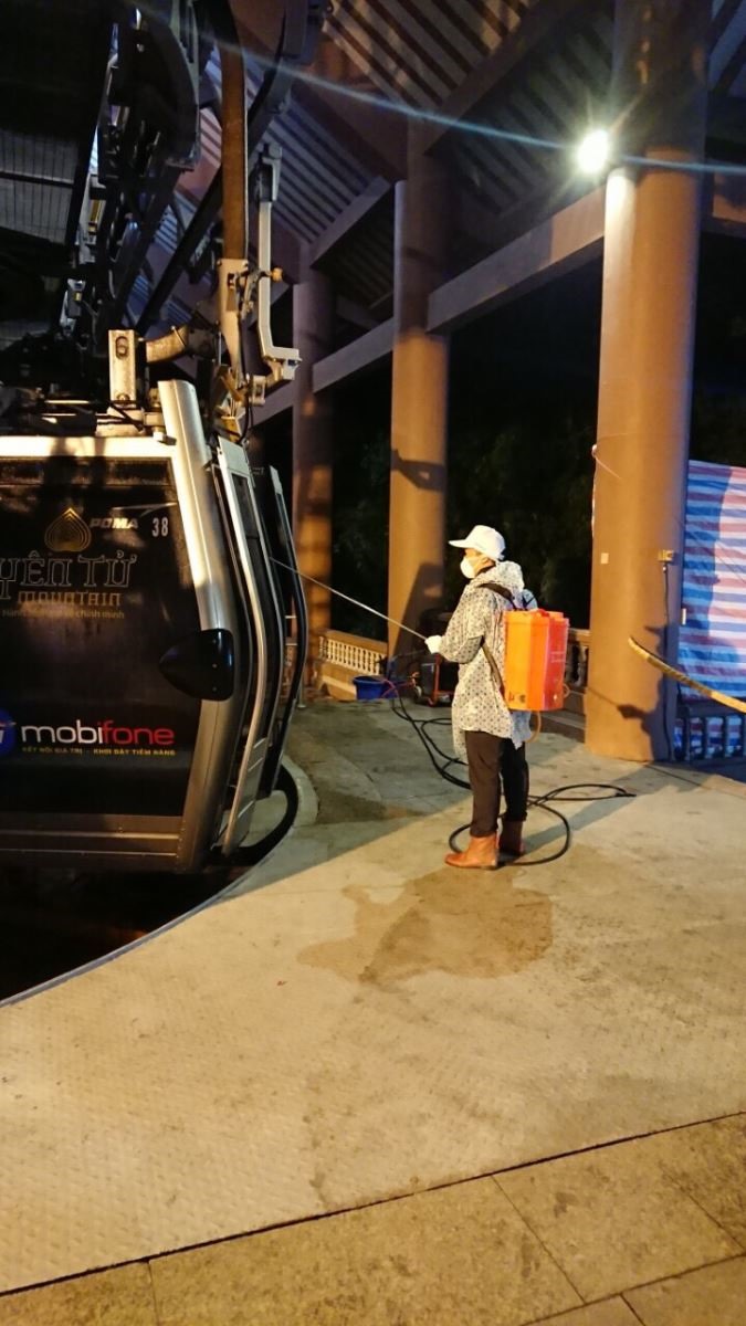 Phun khử trùng cabin cáp treo.