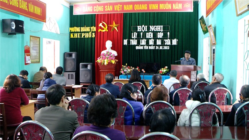 Hội nghị lấy ý kiến góp ý dự thảo Luật Đất đai (sửa đổi) tại khu phố 5, phường Quảng Yên, TX Quảng Yên.