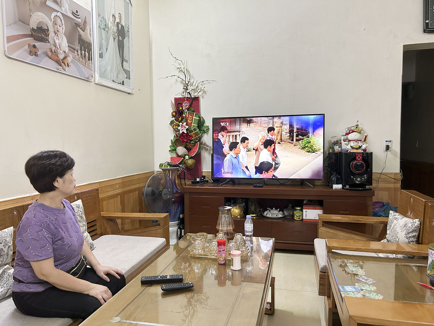 Chị Đặng Hoa trú tại tổ 1, khu 3, phường Thanh Sơn theo dõi Lễ tang Tổng Bí Thư trên VTV1.