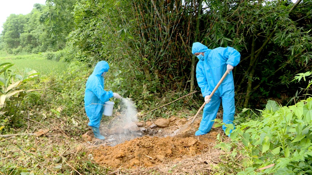 Lợn mắc dịch tả châu Phi được cơ quan chức năng tiêu hủy, chôn lấp theo đúng quy định tại thôn 6, xã Quảng Phong (huyện Hải Hà).