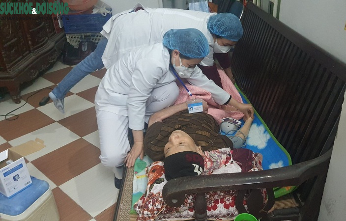Một bệnh nhân có thể trạng to béo khó di chuyển được các bác sĩ đến tận nhà thăm khám, thực hiện tiêm chủng.