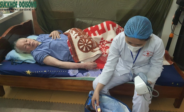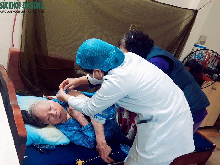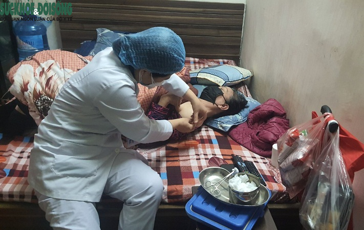 Bệnh nhân bại liệt được các nhân viên y tế tiêm vaccine COVID-19 tại nhà.