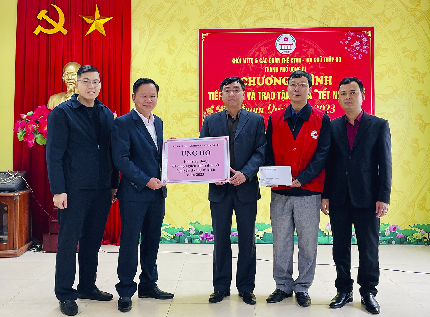 Ngày 10/1, Khối MTTQ và các đoàn thể chính trị - xã hội, Hội Chữ thập đỏ thành phố tiếp nhận ủng hộ quà Tết của Ngân hàng Agribank chi nhánh Uông Bí.