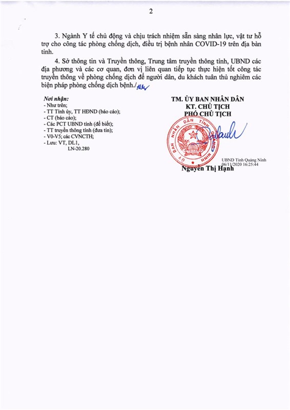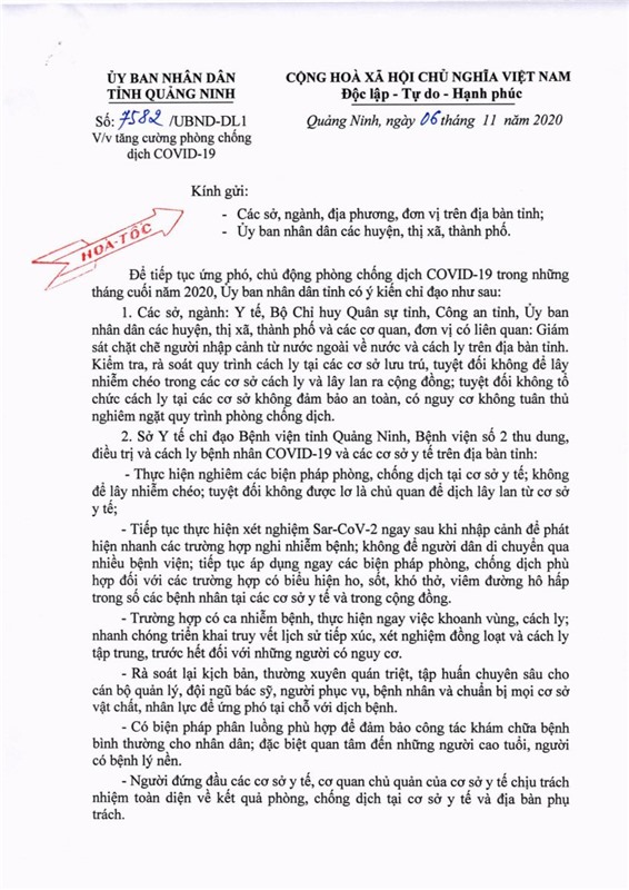 Ủy ban nhân dân tỉnh Quảng Ninh vừa ban hành Công văn số 7582/UBND-DL1: V/v Tăng cường phòng chống dịch COVID-19