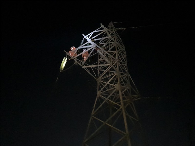 Công nhân Đội quản lý vận hành lưới điện cao thế Quảng Ninh khắc phục sự cố. Ảnh: Ngọc Lan – PC Quảng Ninh.